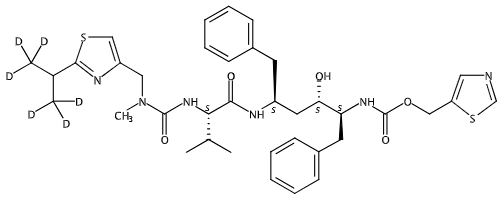 rel-5-Thiazolylmethyl (3R,4R,6R)-4-hydroxy-12-methyl-9-(1-methylethyl)-13-[2-[1-(methyl-d3)ethyl-2,2,2-d3]-4-thiazolyl]-8,11-dioxo-3,6-bis(phenylmethyl)-2,7,10,12-tetraazatridecanoate; 2,7,10,12-Tetraazatridecanoic acid, 4-hydroxy-12-methyl-9-(1-methylethyl)-13-[2-[1-(methyl-d3)ethyl-2,2,2-d3]-4-thiazolyl]-8,11-dioxo-3,6-bis(phenylmethyl)-, 5-thiazolylmethyl ester, (3R,4R,6R)-rel- |